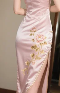 At the slit of the cheongsam, peonies embroidered with gold thread wound their way up her snow-white skin, outlining the curves of the girl’s waist and hips in a breathtaking way, as if there were an invisible force of attraction, making one want to reach out and touch that softness.