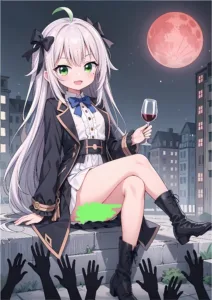 Seated upon a white throne was a girl with snow-white hair and emerald eyes. Her face looked as if sculpted by the hand of a god—【*Ahahaha, because I am a god!】.